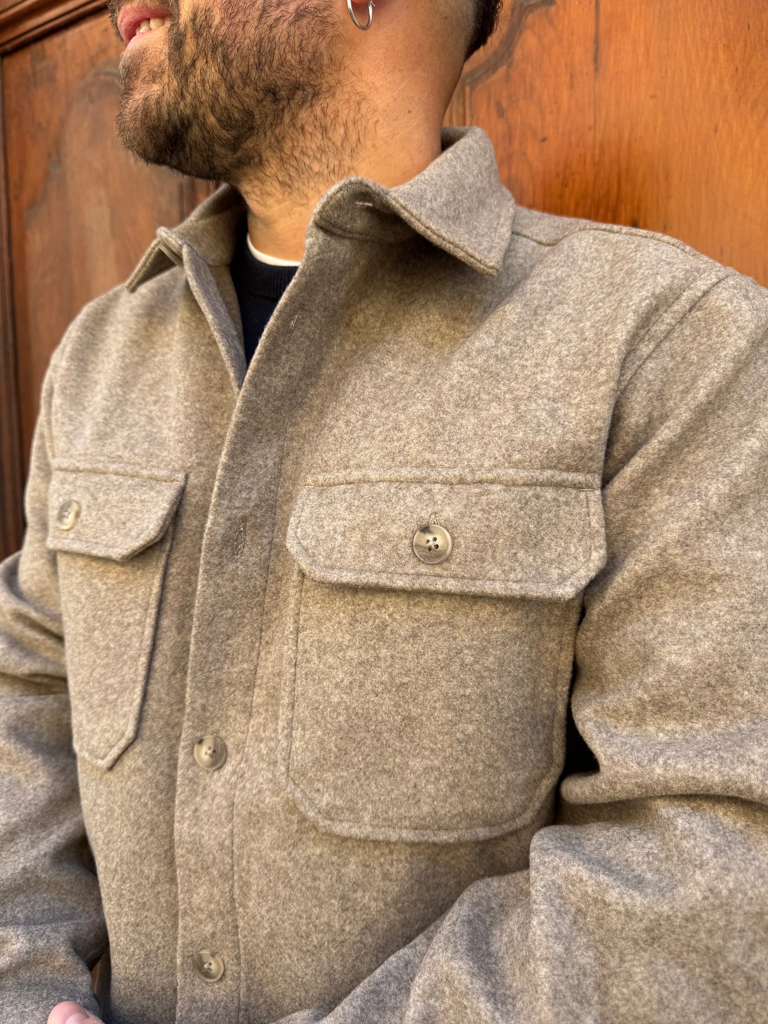 Giacchetta in panno di Tiffosi, morbida e calduccia, tasche altezza petto frontali, vestibilità regular, il modello è alto 1.70 per 77 kg e indossa una S.