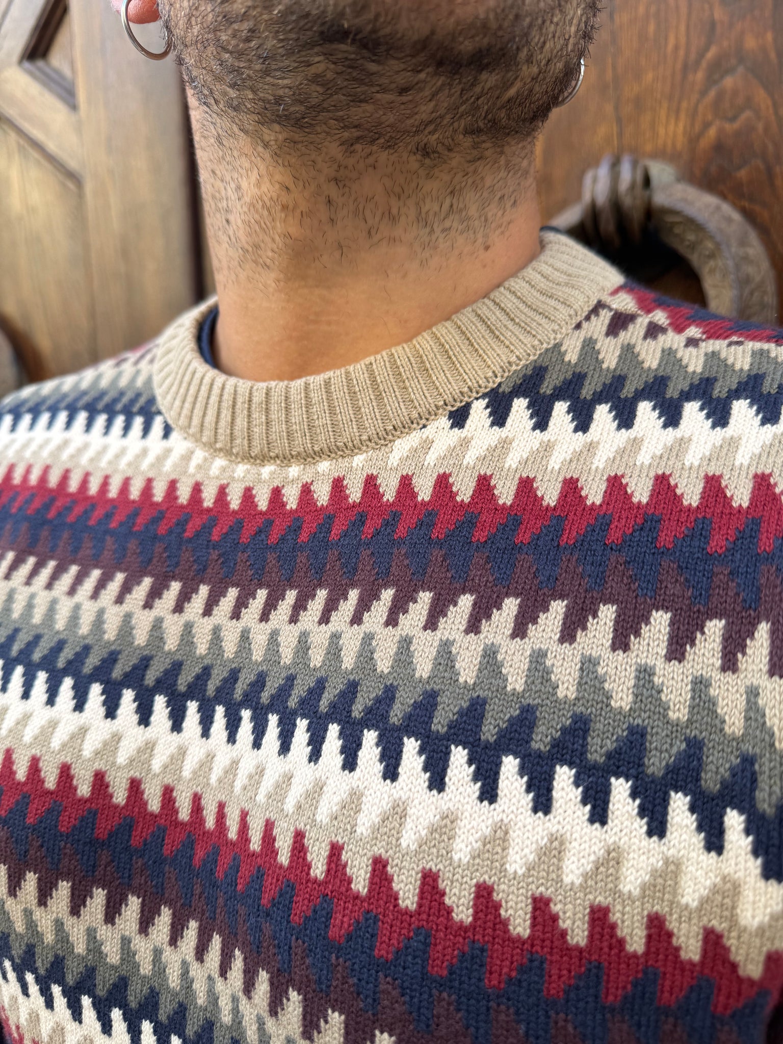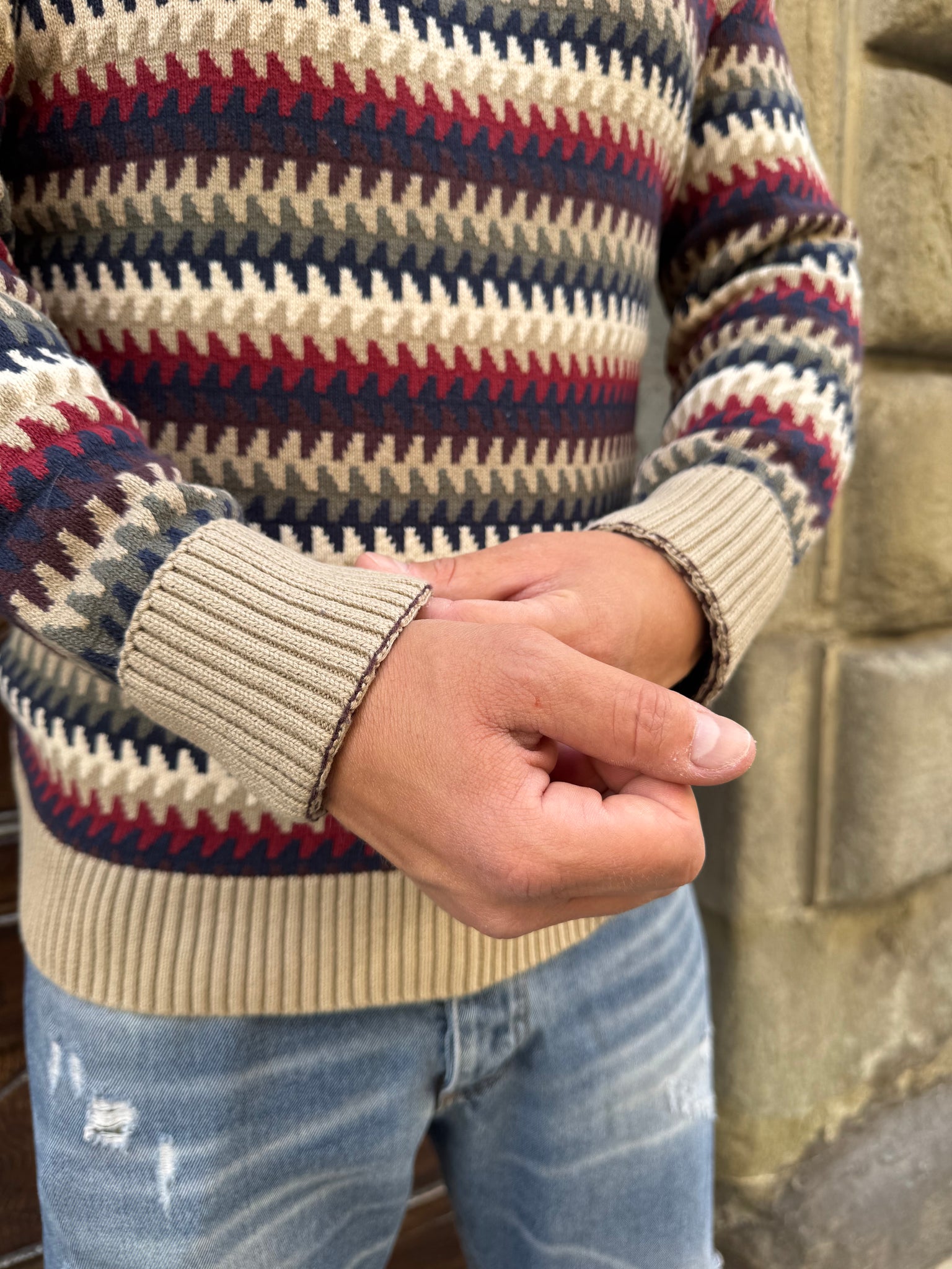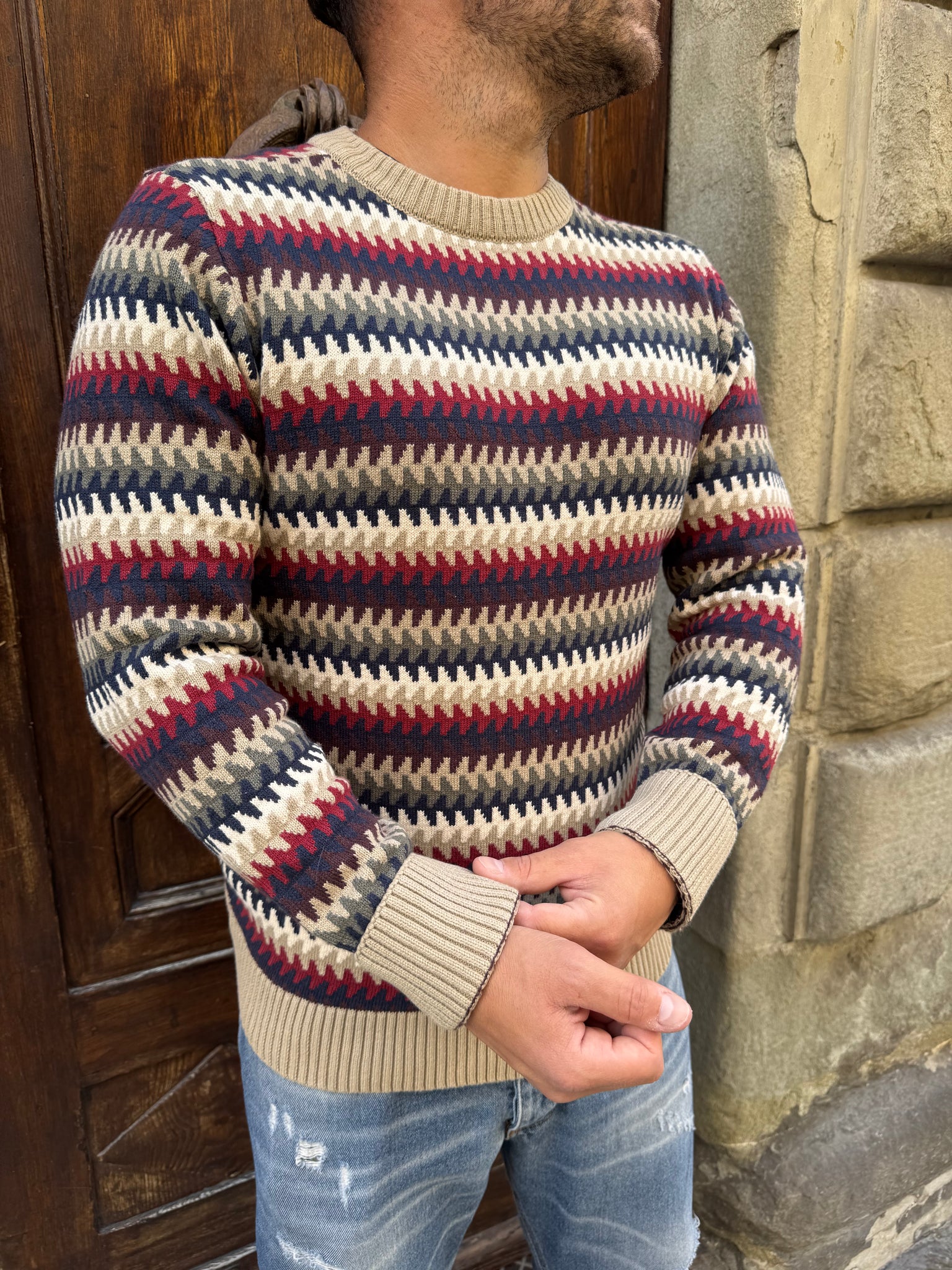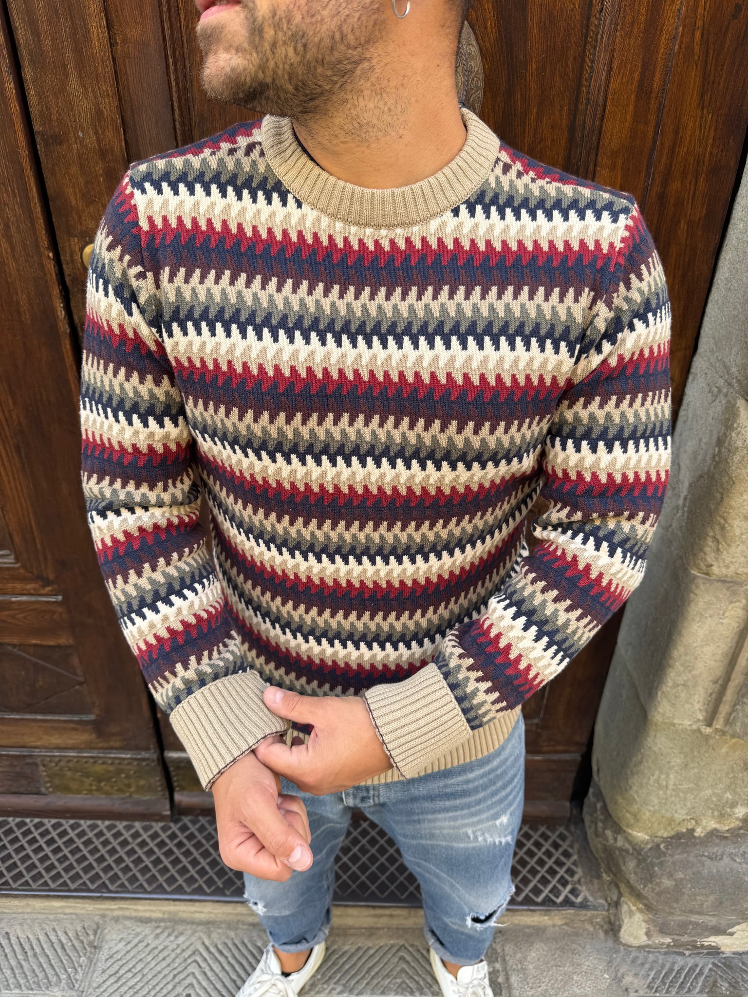Maglioncino Caesar di PETROL, fantasia colour, caldocotone, girocollo, vestibilità regular, il modello è alto 1.70 per 80 kg e indossa una M.