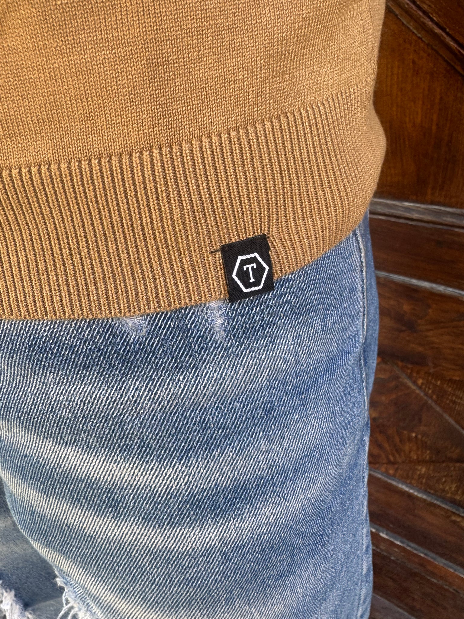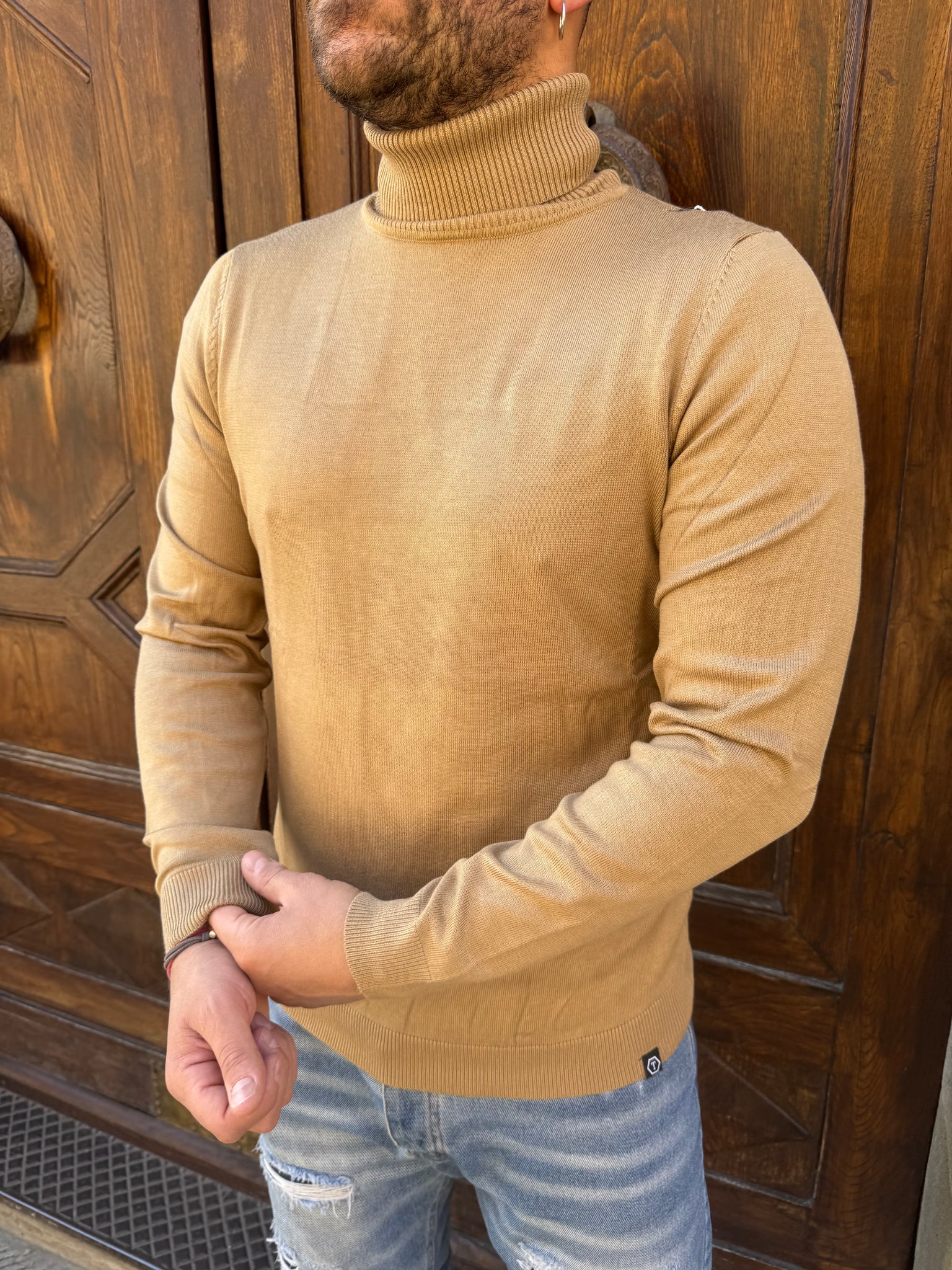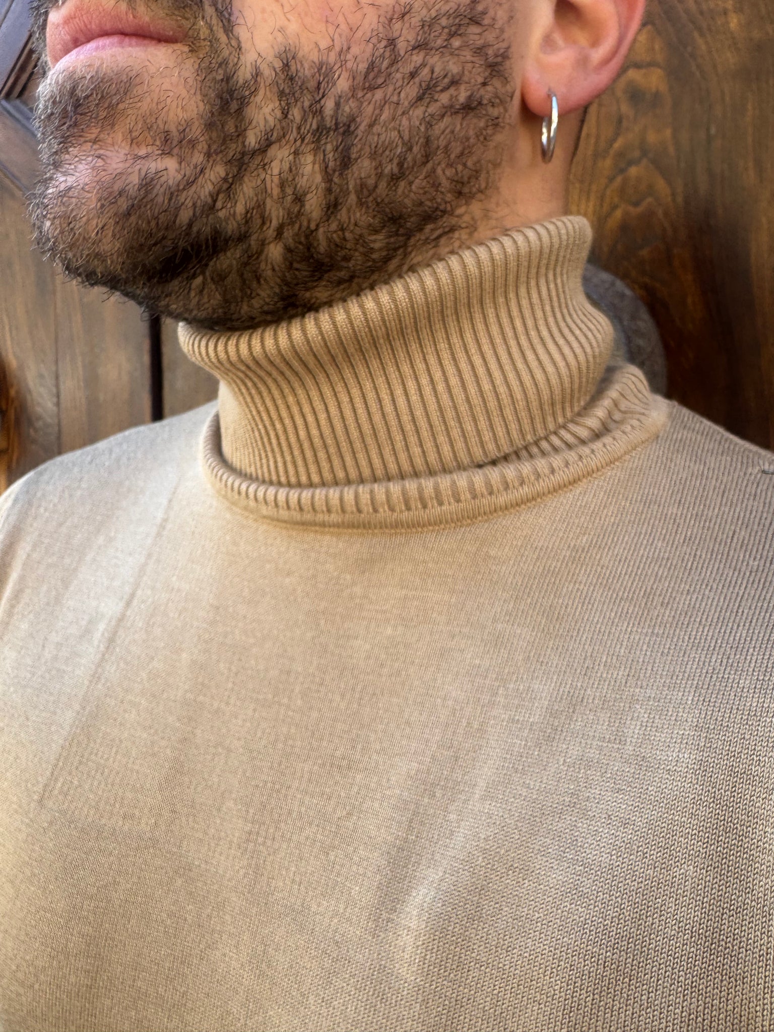 Maglioncino Dolcevita di Telamira in viscosa, vestibilità slim, il modello è alto 1.70 per 77 kg e indossa una M. Disponibile : panna, ottanio,blu , senape e bordeaux.